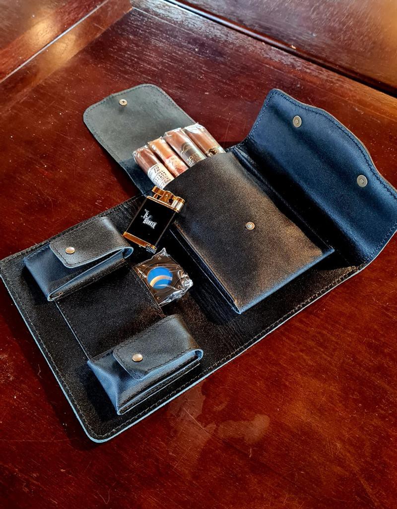 Os acessórios que compõem as fotos não fazem parte do porta charutos.